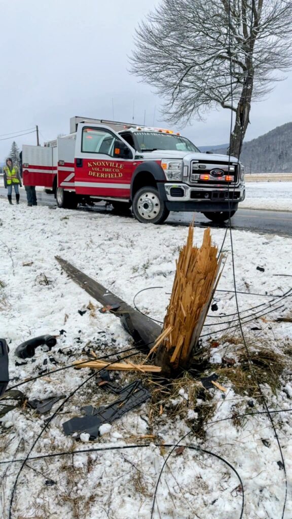KNOXVILLE, PA – A single vehicle accident sent one person to the hospital late Tuesday morning, December 23, 2025. The crash occurred around 11:30 AM near 6067 Route 49 in Deerfield Township.