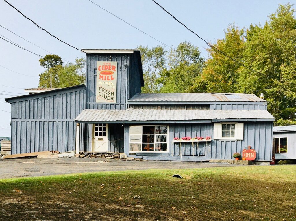 Case’s Cider Mill Painting by Sherri Stager still stands today in Mansfield, PA. The bright red was gone long ago as gray covers the exterior. Next image is Case’s Mansfield Cider Mill photo 2024.