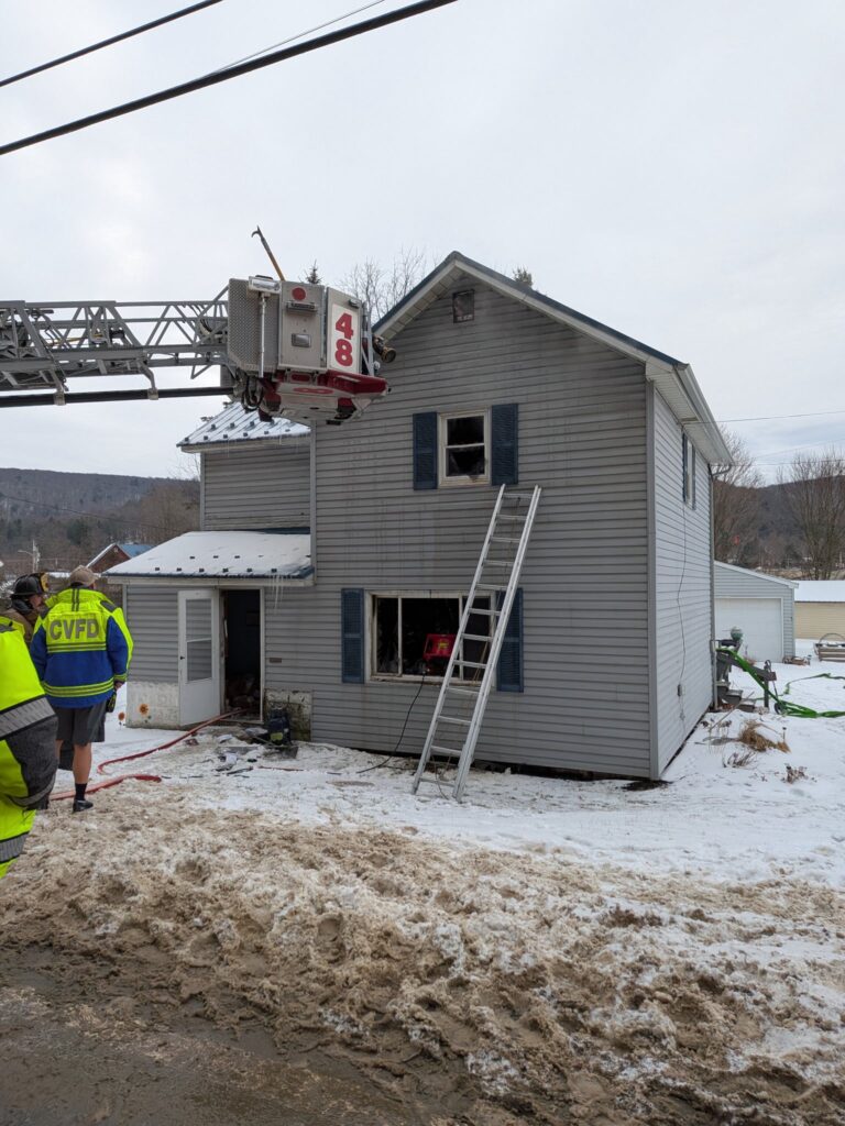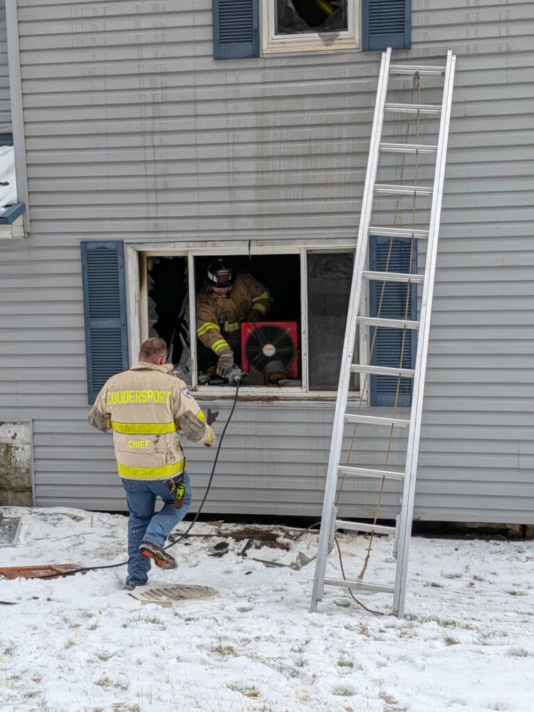 COUDERSPORT, PA – On Monday, January 5, 2026, around 1:10 PM, fire crews were dispatched to a house fire directly across from Sheetz along Route 6 West in Coudersport, PA. The 2½-story home located at 123 Route 6 West had visible smoke coming from eaves as Coudersport’s Assistant Chief Mike Spencer arrived on scene within a minute of the tones going off.