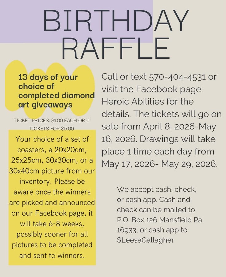 Here are the details to the Birthday Raffle