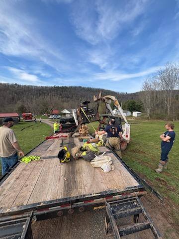 Once command was set up, White’s Towing was requested to respond with their Rotator unit to help on scene so firefighters could work to free the victim.