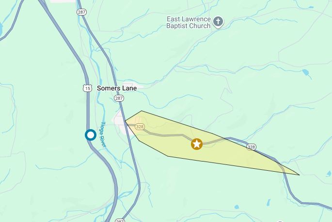 The largest outage appeared to be along Tioga River Road, and along Route 328 (Junction Cross Road and Charlie Lane). See image provided.