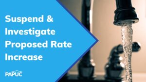 The Commission voted 5-0 to investigate PAWC’s proposed overall increase of $168.7 million (approximately 14.6%) in total annual operating revenues for water and wastewater service. As proposed, PAWC customers would have seen the following rate changes: