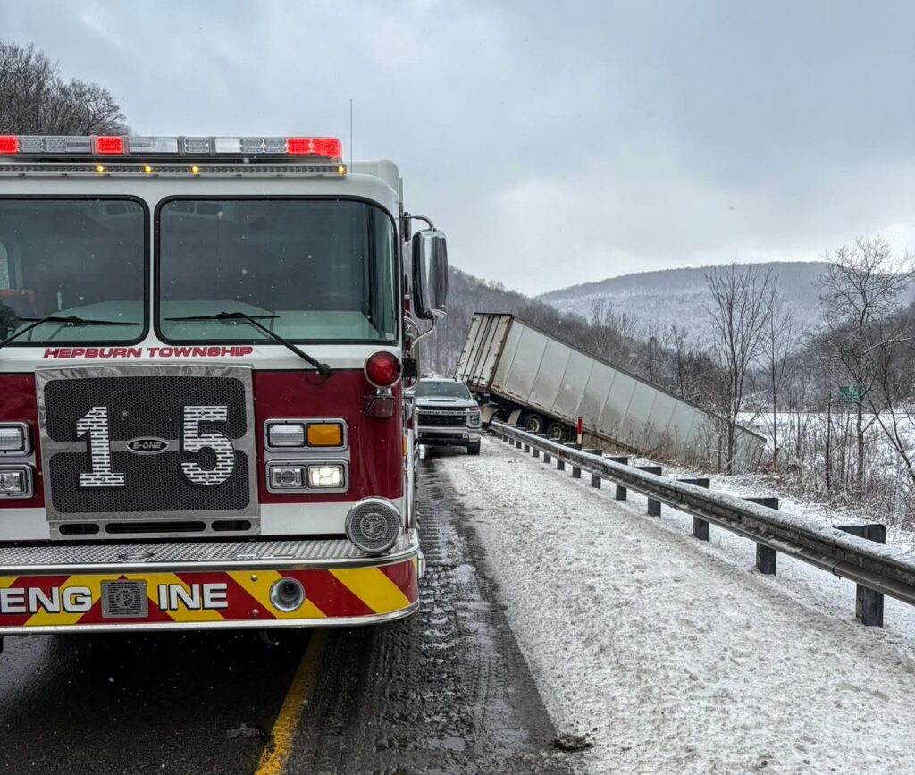 An utility rope was said to have been deployed to assist with getting the driver and Trout Run’s Lieutenant back up the embankment. PennDOT and Hepburn firefighters handled traffic during the incident.