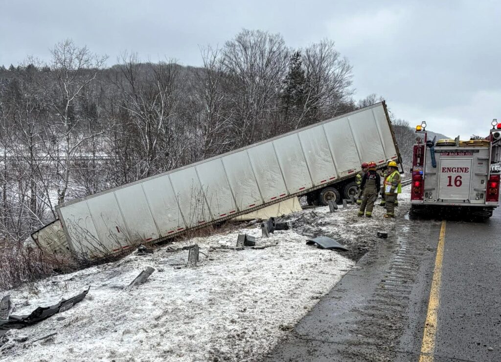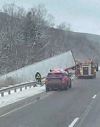 LYCOMING COUNTY, PA – Trout Run fire crews were dispatched to a tractor trailer accident in the 20,000 block of Route 15 Highway in the Southbound lanes.